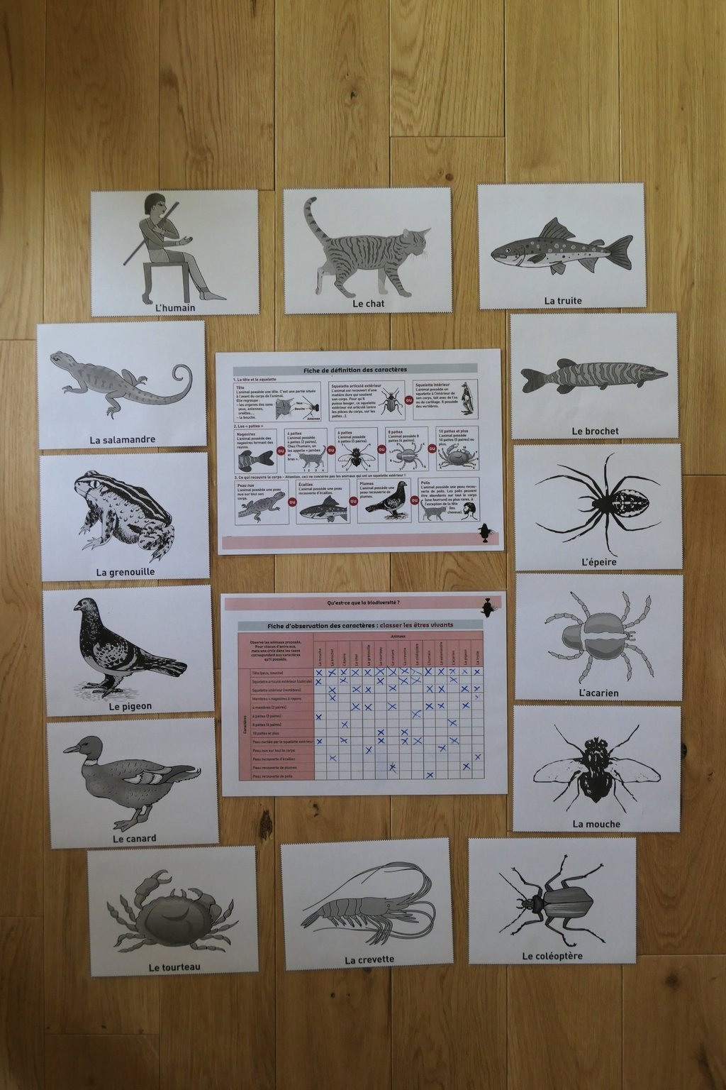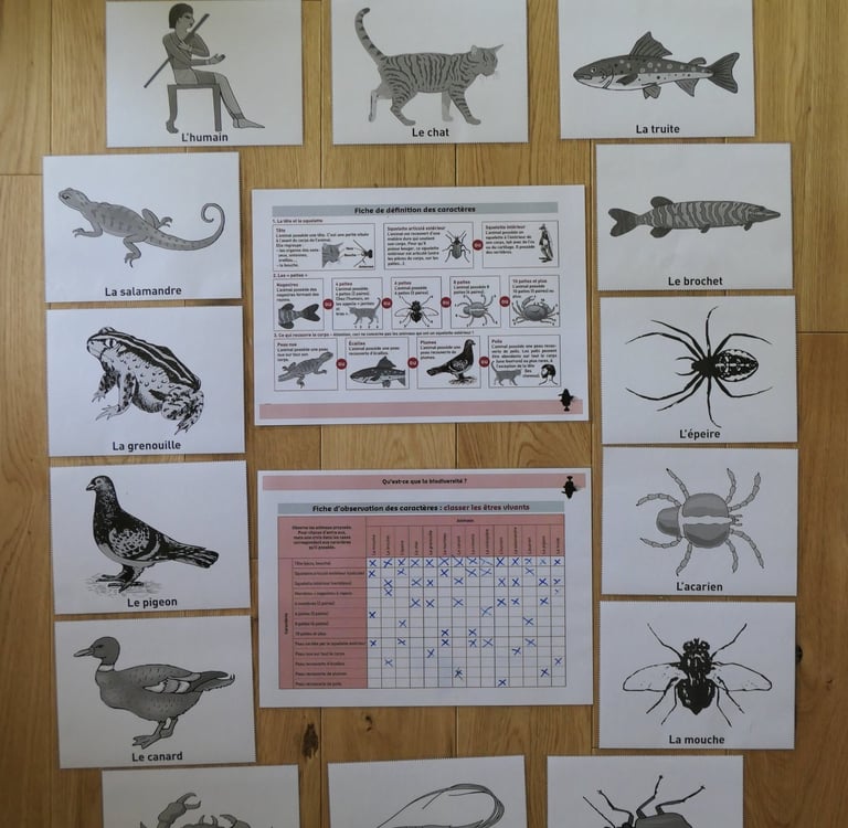 J'utilise en dehors des cinq sens physiologiques, du matériel pédagogique que je mets à disposition aux enfants (loupes, jumelles, guides d'identification...) qui s’ajoutent aux jeux et aux activités que je leur propose.