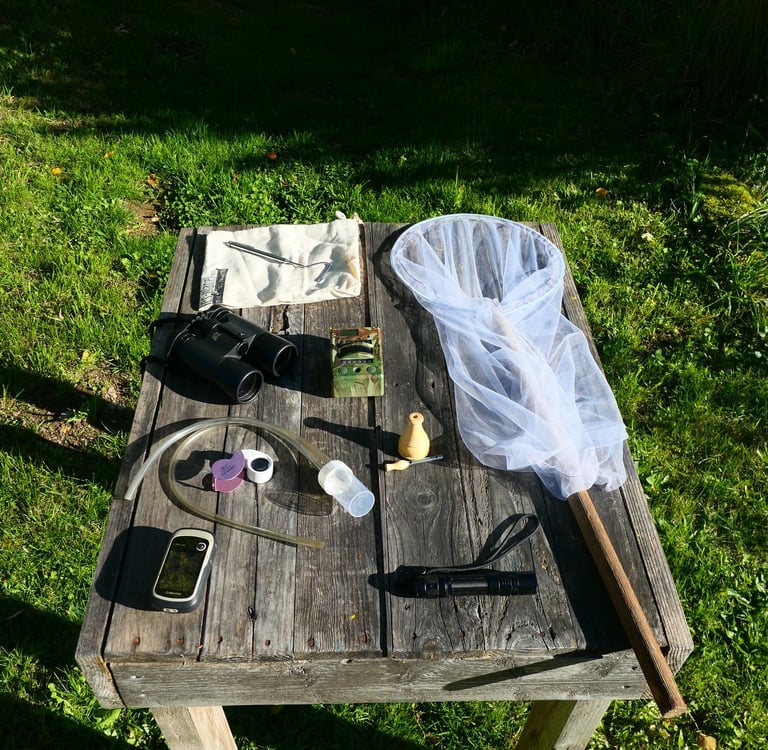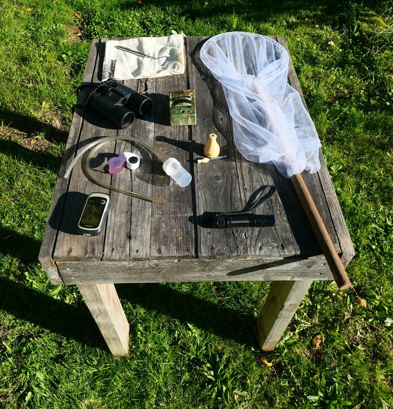 Loupe, jumelle, boîte à insecte, filet à papillons...